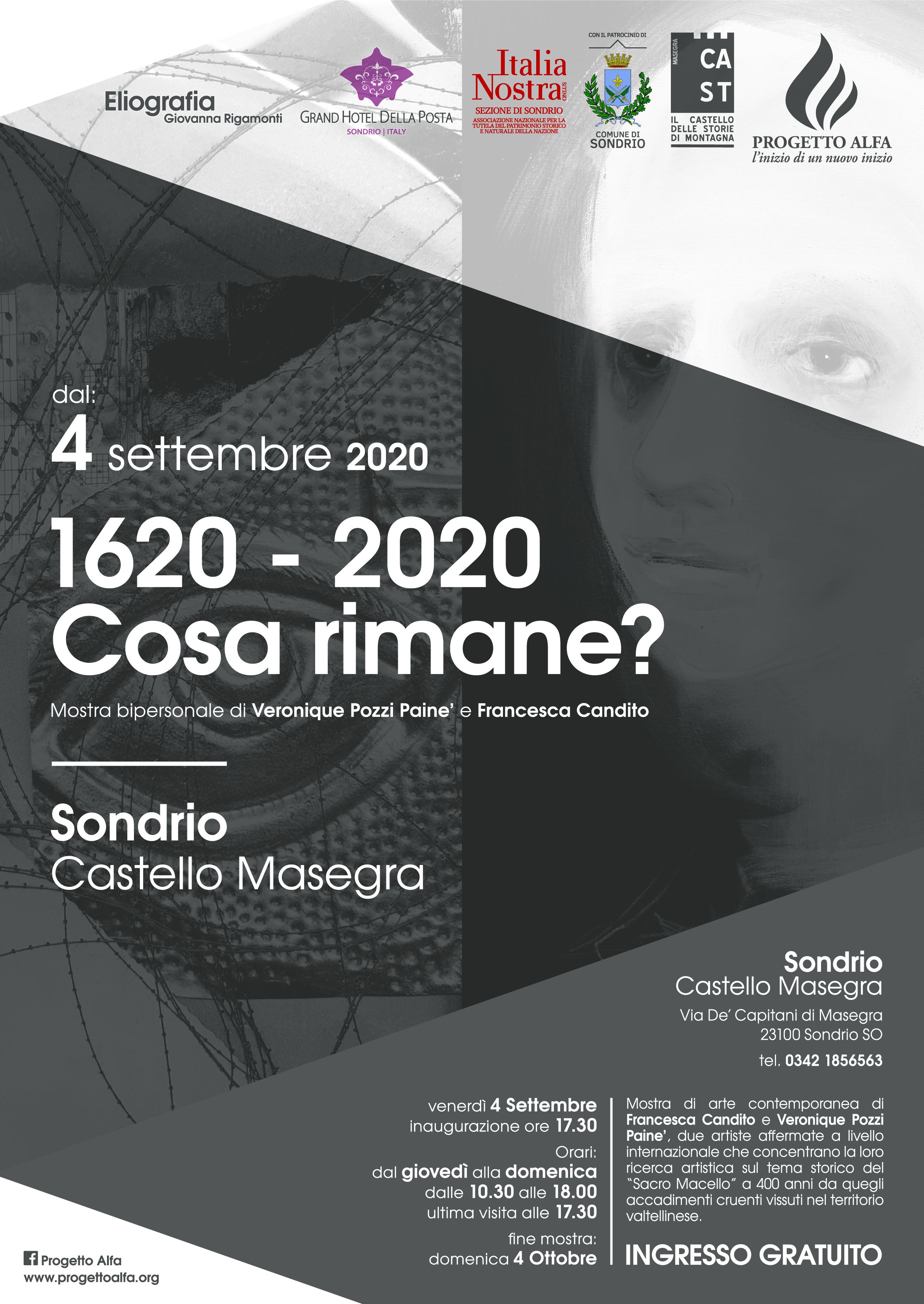 Mostra di arte contemporanea di Francesca Candito e Veronique Pozzi Painč, due artiste affermate a livello internazionale che concentrano la loro ricerca artistica sul tema del "sacro macello" a 400 anni da quegli accadimenti cruenti vissuti sul territorio valtellinese.