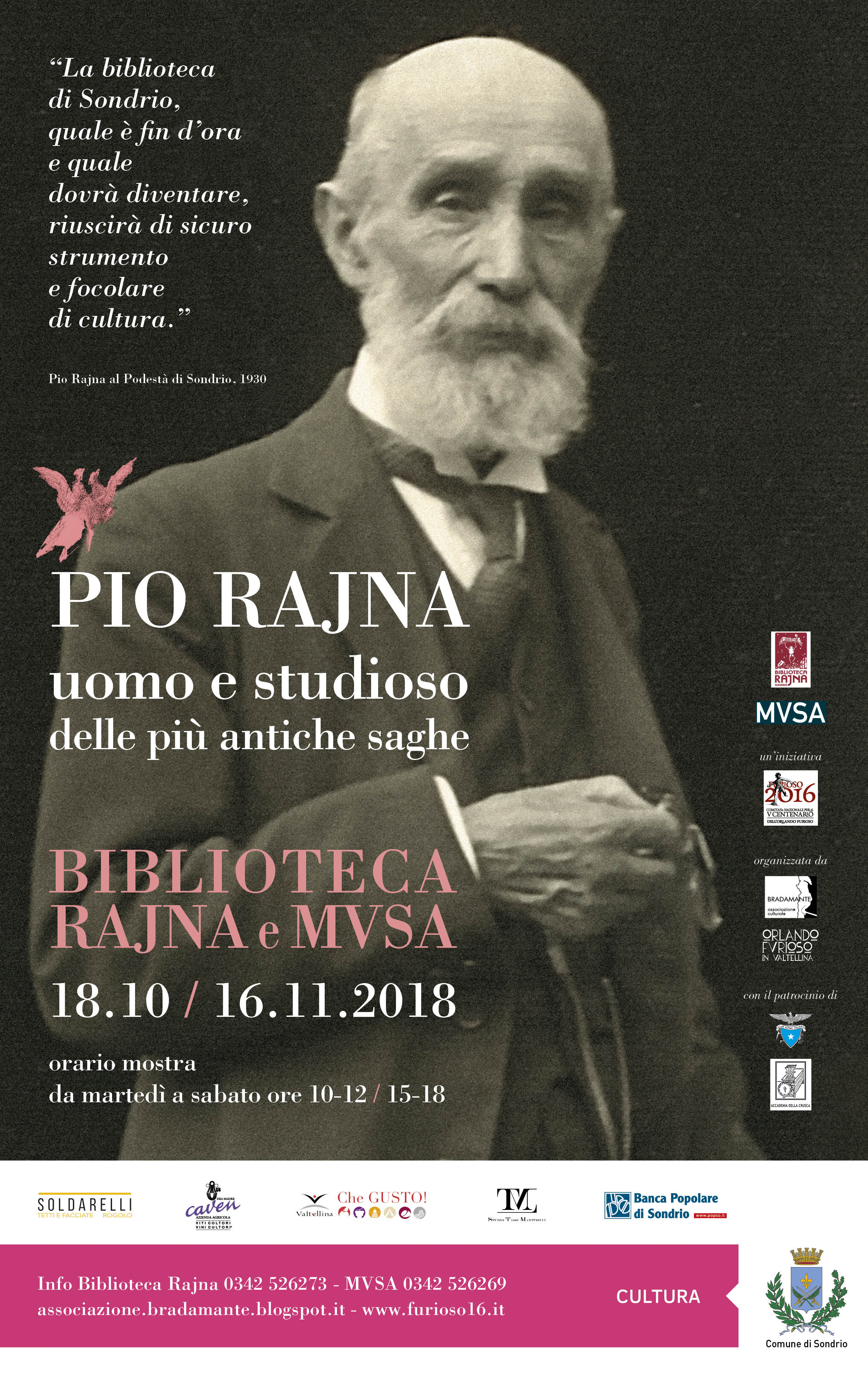 L'inaugurazione della mostra si terrà giovedì 18 ottobre, alle ore 17.00, presso la Biblioteca Rajna (Via IV Novembre, 20, Sondrio)